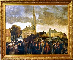 Nu staat het schilderij in de ramsh, de z.g. aftersales en daar kan een lager bod uitgebracht worden dan de eerst redelijk geachte 4.000 euro. De eigenaar lijkt nu genoegen te willen nemen met 3.000 euro (kosten koper: 3.750 euro) en als dat ook niet gehaald wordt, zo fluistert men, wordt het werk in bruikleen afgestaan aan het Princenhaags Museum, in afwachting van beter tijden. Ook de aquarellen van de Haagsemarkt van Pierre van Lit kregen via de website van Veilinghuis Breda niet de aandacht die ze verdienen. Ook die staan nu in de na-verkoop voor een minimumbod van 30 euro. |